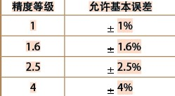 其次是正確選擇壓力表的精度等級(jí)。壓力表的精度等級(jí)對(duì)應(yīng)允差關(guān)系如下表: